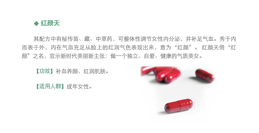 『功 效』补血养颜,激活卵巢细胞,营养子宫,促进女性荷尔蒙的分泌,使肌肤光滑、细嫩、充满弹性,达到延缓衰老的作用。